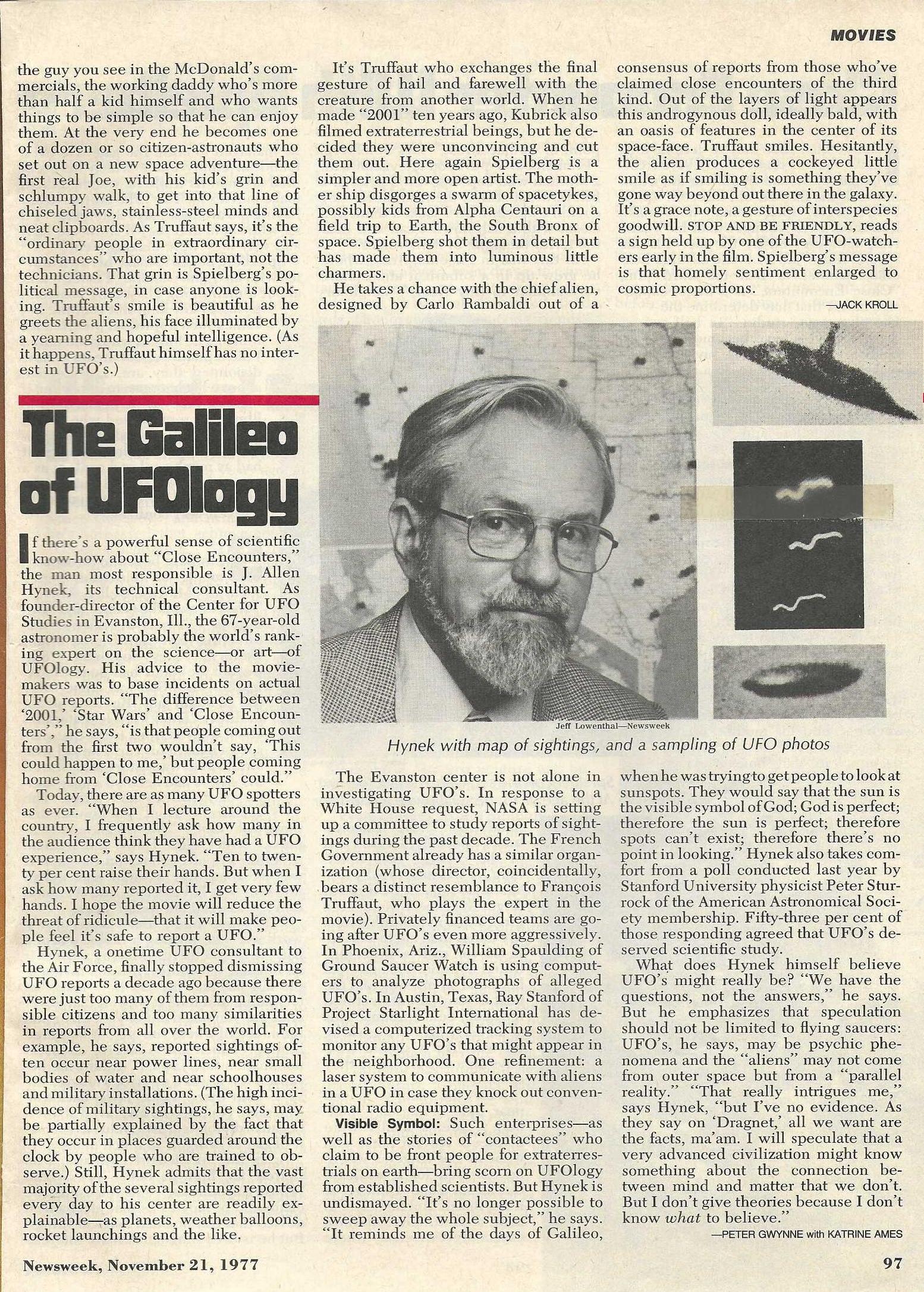 Dr. J. Allen Hynek, the country's premier UFO